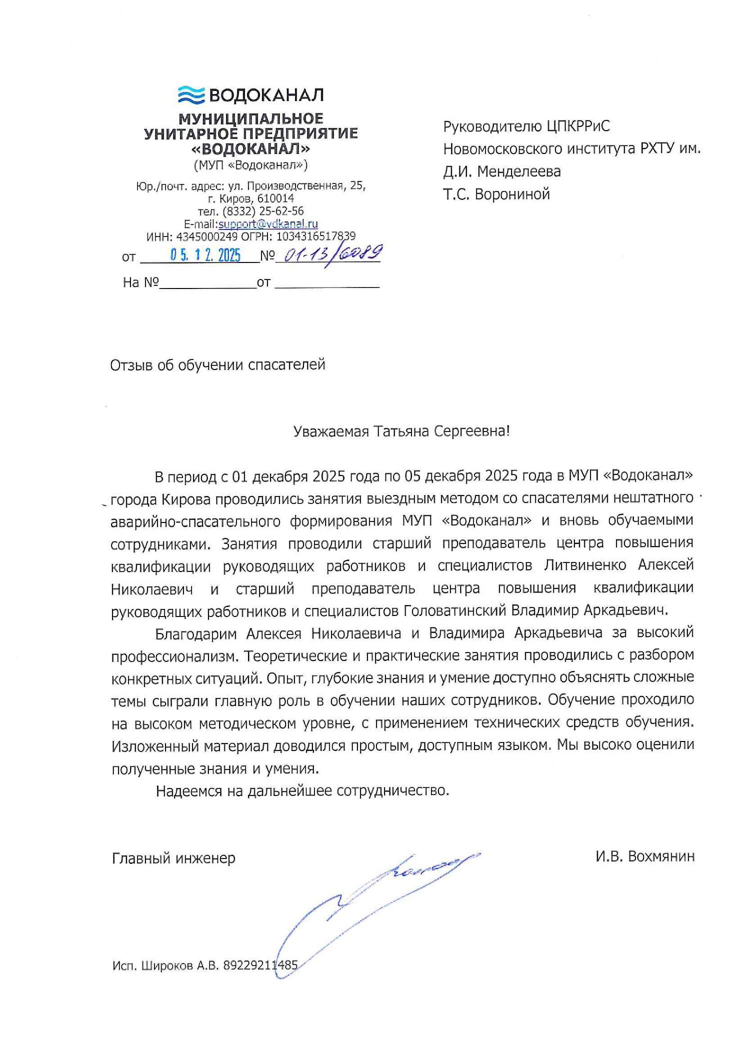 Благодарность от коллектива МУП «Водоканал» города Ставрополь